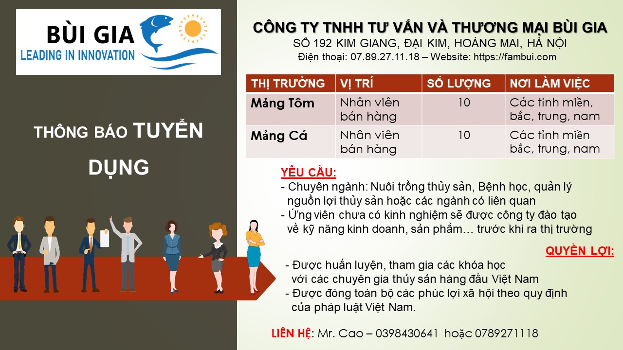 - Chuyên ngành: Nuôi trồng thủy sản, Bệnh học, quản lý nguồn lợi thủy sản hoặc các ngành có liên quan